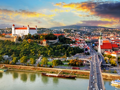 Bratislava sits along the Danube river and is known for its compact historical core. The city provides a look at both medieval history and more modern twentieth-century architecture.