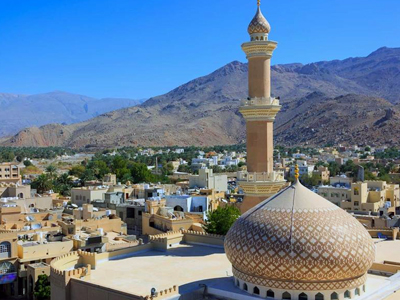 Nizwa is an ancient Omani city situated at the base of the Western Hajar Mountains. It is noted for its massive circular fort and historical marketplace traditions.