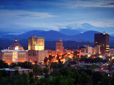Asheville is nestled in the Blue Ridge Mountains of North Carolina. The city is characterized by its vibrant arts scene and extensive historical estate landscapes.